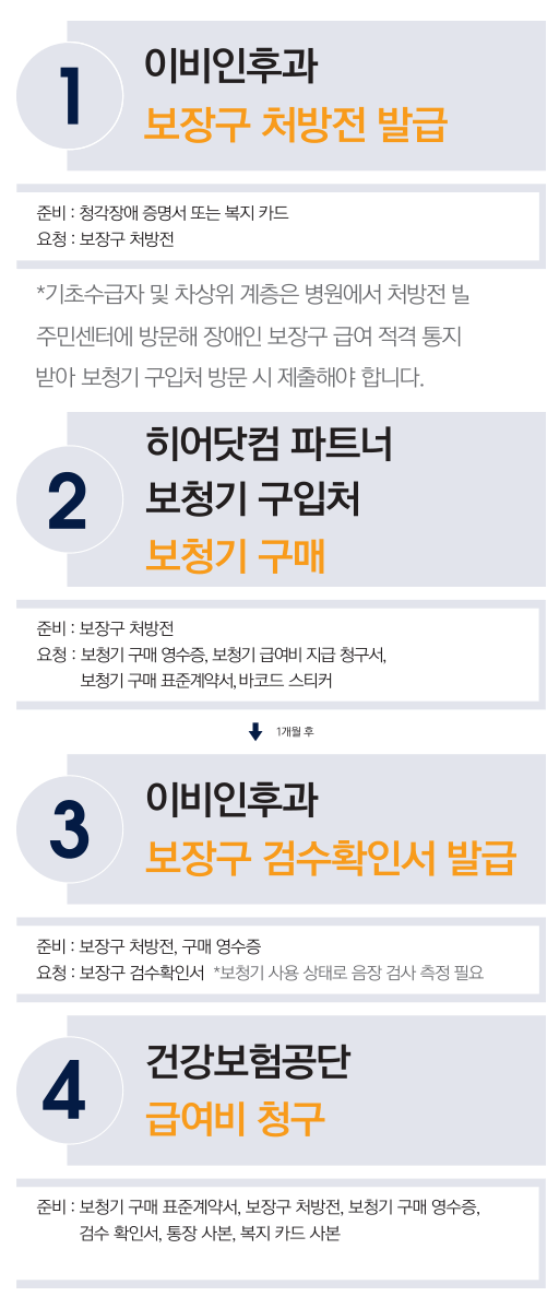 - 보장구 처방전 발급: 이비인후과에서 보청기 처방전을 발급받습니다.