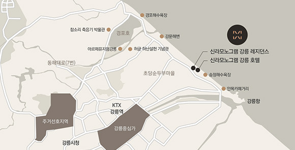 신라모노그램 강릉은 신라호텔 그룹이 선보이는 국내 첫 '모노그램' 브랜드 호텔입니다. 호텔과 레지던스 두 가지 형태로 운영되는 신라모노그램 강릉은 동해안의 아름다운 전망과 프리미엄 서비스를 동시에 제공합니다. 안목해변과 강문해변 인근에 위치하여 완벽한 오션뷰를 자랑하며, 강릉역과 고속버스터미널에서 15분 거리로 접근성도 뛰어납니다.