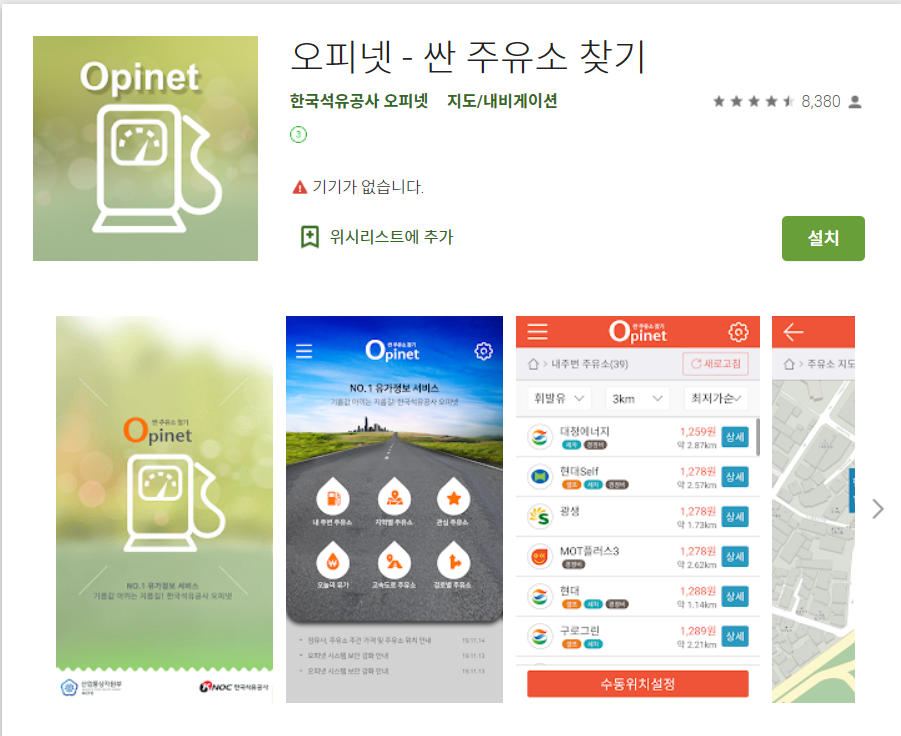 오피넷 앱 설치 및 기본 사용법