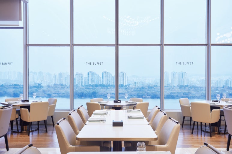 날씨가 좋은 봄과 가을에는 50석 규모의 테라스 좌석을 예약하는 것을 추천합니다. 한강의 탁 트인 전망을 감상하며 식사할 수 있는 테라스는 워커힐 더뷔페에서만 경험할 수 있는 특별한 공간입니다. 예약 시 테라스 좌석을 원한다고 미리 요청하면 배정받을 확률이 높아집니다.