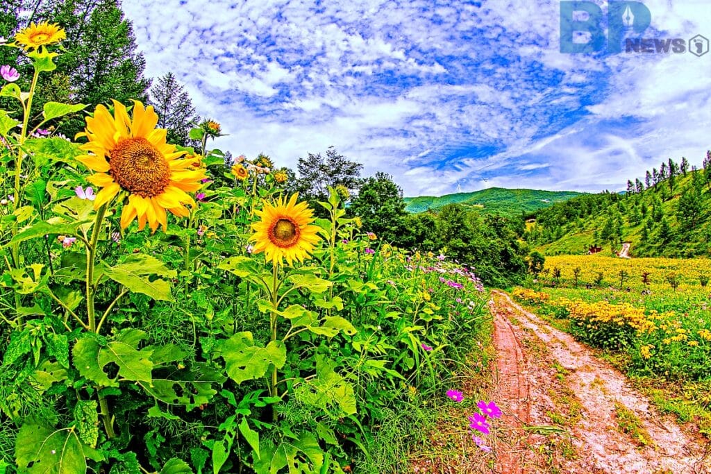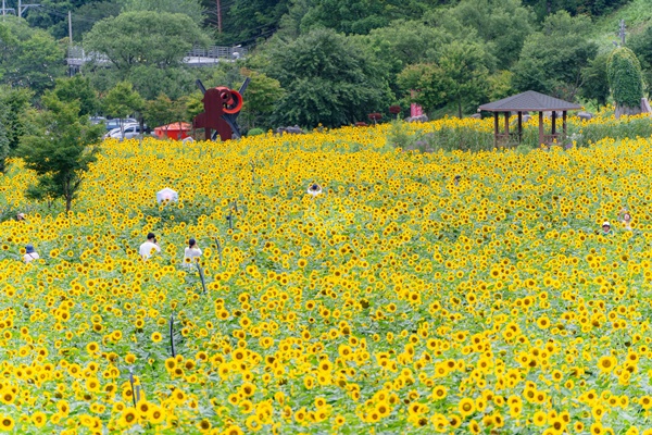 - 전망대에서 100만 송이 해바라기 파노라마 감상