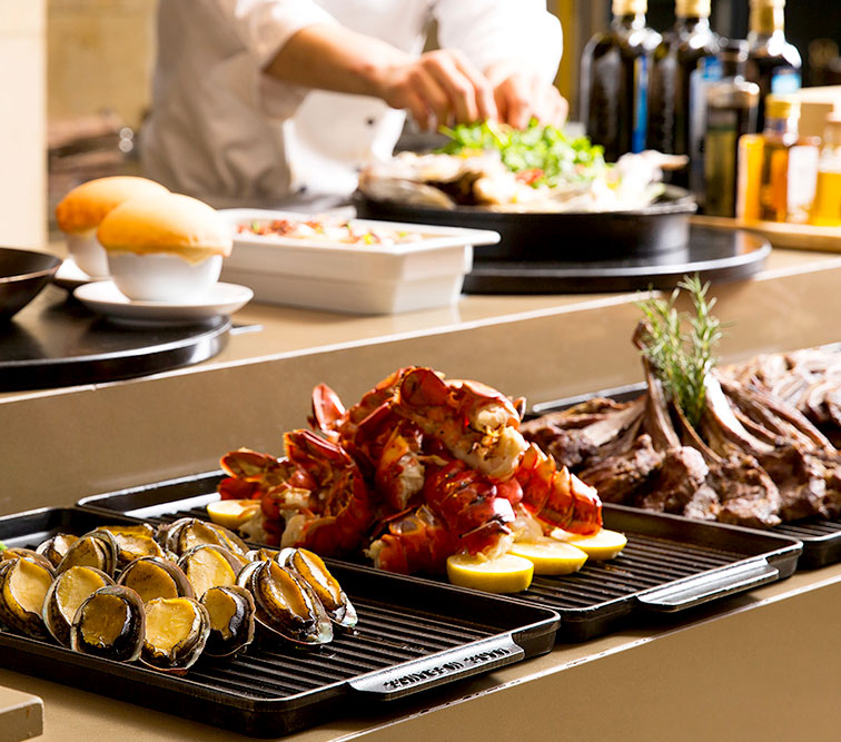 신라호텔 뷔페의 가장 큰 자랑은 최상급 식재료 선별부터 시작됩니다. 전 세계에서 공수한 신선한 식재료들은 엄격한 품질 관리를 거쳐 고객님의 테이블에 올라갑니다. 특히 라이브 쿠킹 스테이션에서는 숙련된 쉐프들이 고객님 눈앞에서 즉석으로 요리를 선보입니다.